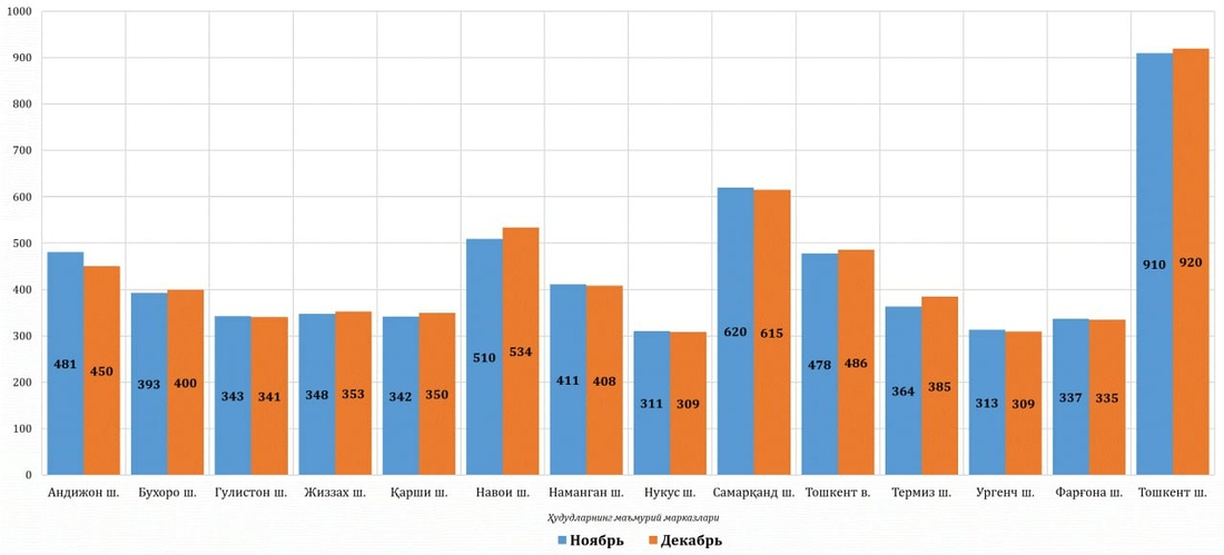 2022-yil boshidan buyon Toshkent shahrida ijaraning o‘rtacha narxi 34,6% ga oshdi. Poytaxtda dekabr oyida ikkilamchi uy-joy ko‘chmas mulk bozorida narxlarning o‘sishi 1,1% ni tashkil etgan