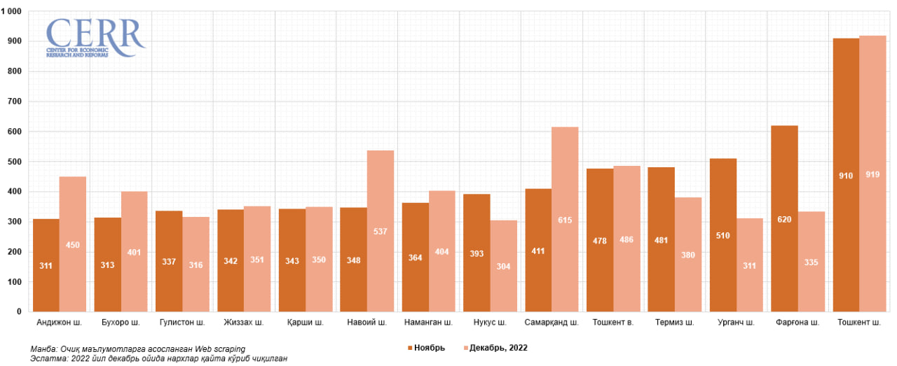Narxlarning sezilarli o‘sishi Navoiy, Farg‘ona va Toshkent shahrida kuzatildi