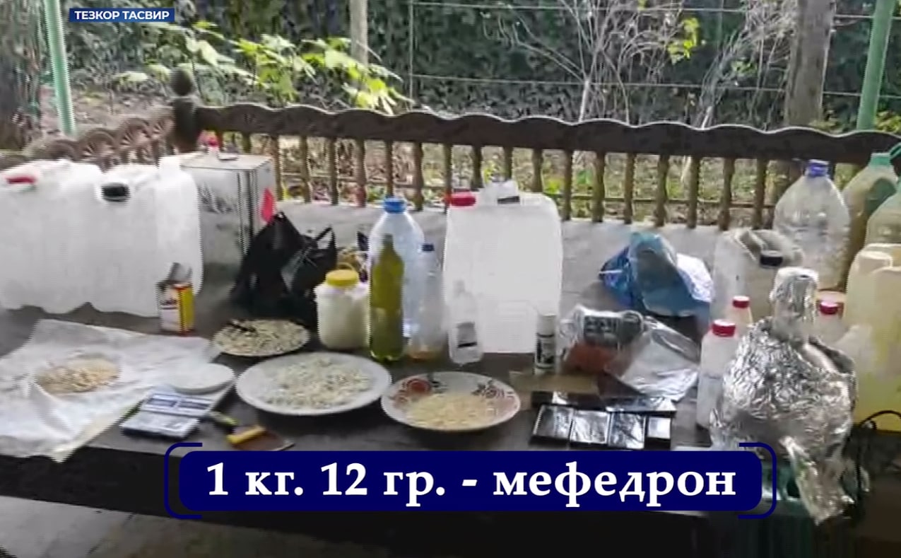 Xonadon ko‘zdan kechirilganda jami 1 kg.12 gr “mefedron” sintetik giyohvandlik vositasi, uni tayyorlashda foydalaniladigan kimyoviy suyuqliklar va boshqa zarur uskunalar borligi aniqlandi.