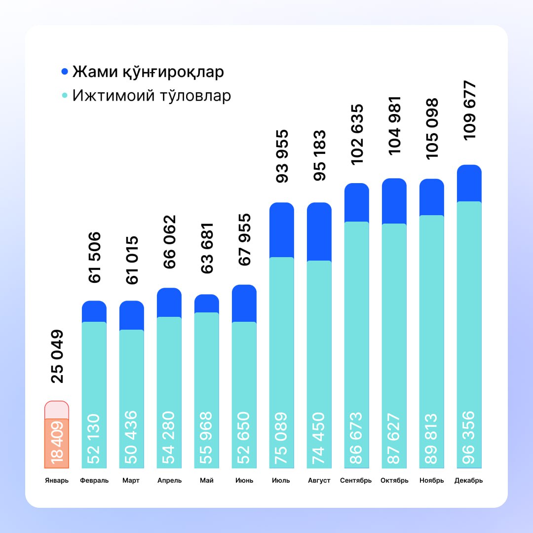 Ijtimoiy himoya milliy agentligining "1140" va (71) 202-06-00 ishonch telefoni orqali jismoniy va yuridik shaxslardan jami 1 153 536 ta qo‘ng‘iroq va murojaat kelib tushdi.