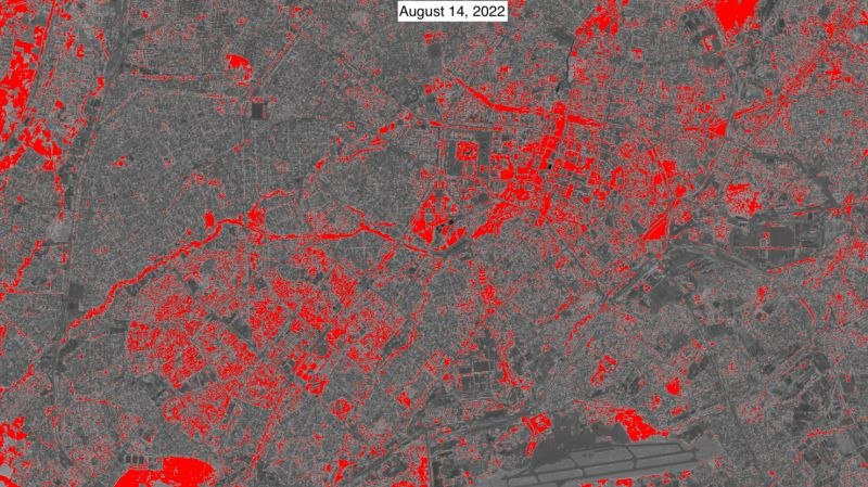 2022-yil 14-avgustda esa yashil maydonlar keskin o‘zgargani maʼlum bo‘ldi, o‘simlik qoplamining atrofidagi foizi taxminan 13,15% ga tushib ketgan.
