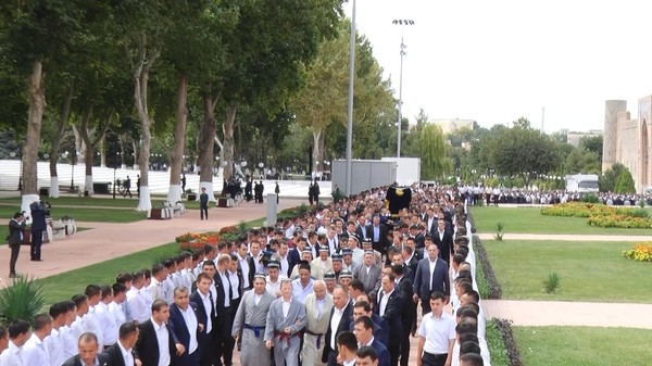 В соответствии с мусульманскими обычаями в медресе Тиллакори комплекса Регистан был совершен жаноза-намаз.