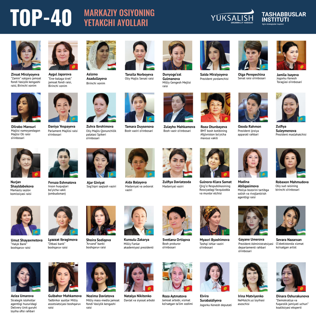 Марказий Осиёнинг Топ-40 етакчи аёллари рўйхати: