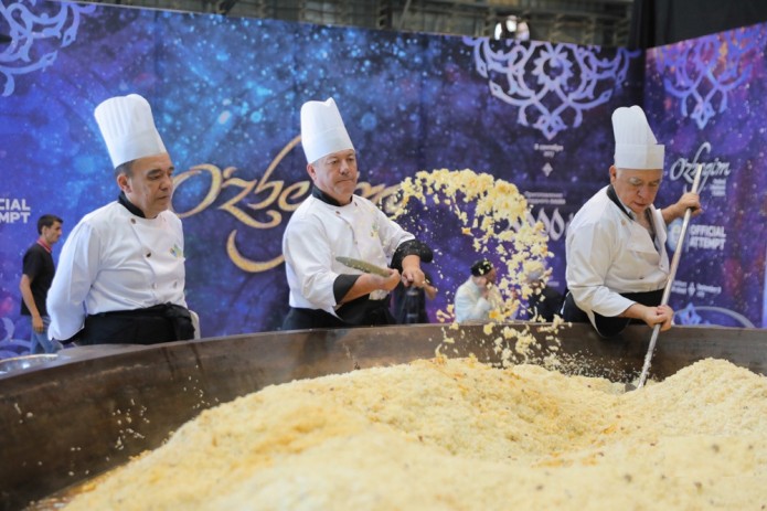 Сегодня в Ташкенте проходит Фестиваль традиционной культуры «O’zbegim», в рамках которого 50 лучших поваров Узбекистана приготовили самый большой плов в мире и установили мировой рекорд Гиннеса! Общий вес плова составил 7360 кг.