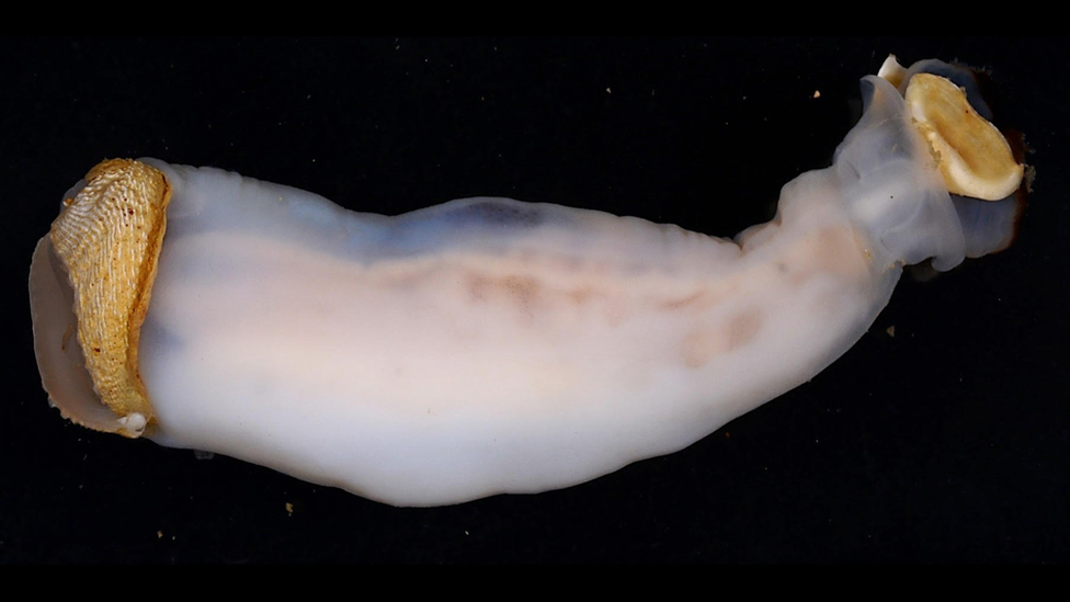 Этот странный моллюск относится к семейству корабельных червей, которые получили такое название за то, что поедают дерево - в особенности корабельный лес, "пробуривая" в нем глубокие дыры.